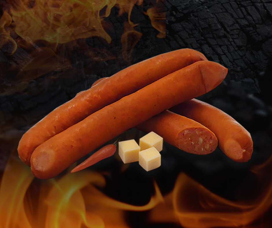 Zutaten: 80% Putenfleisch, 10% EMMENTALER, Nitritpökelsalz (Salz, Konservierungsstoff: Natriumnitrit), Putenfett mit Haut, Dextrose, Gewürze, 0,3% Chili, Stabilisator: Diphosphate; Antioxidationsmittel: Ascorbinsäure; Gewürzextrakte, Schafsaitling, Buchenholzrauch.